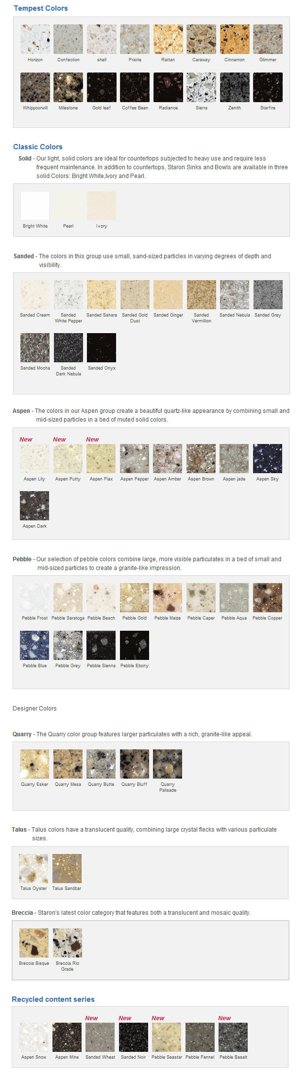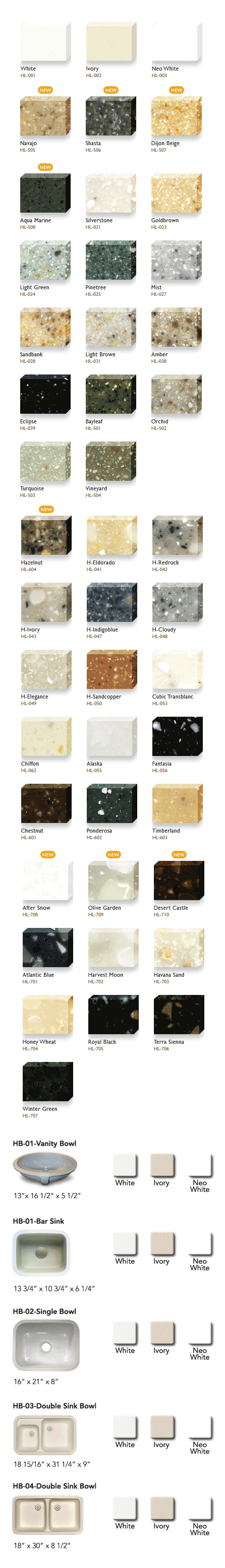We carry every line of solid surface available if you do not see it listed above give us a call, chances are we've got samples for you to look at.