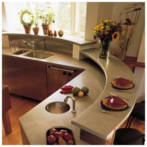 Acrylic surfaces are a very affordable and easliy manupulated material. It is commonly referred to as "Corian" however, there are many different maufacturers to choose from besides Dupont's famed brand, Corian. Acrylic material is also often called solid surface, no matter what it's called it is an excellent choice and offers seamlees sink applications, a big seller for many germ conscious families. Acrylic is the only material that is 100% repairable and can be heat bent or even stacked to make whatever your imagination can create. Acrylic is typically most commonly found in bathrooms, or used as shower walls, but can be used almost anywhere. A great alternative if stone or quartz falls a bit out of your budget.