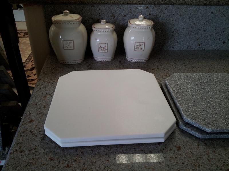 Note: Quartz is not recomended for dishwasher cleaning, and is not as knife friendly as acrylic.